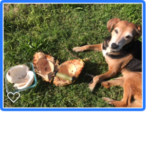Pixie with the coconut tool. I love this tool for extracting coconut meat.